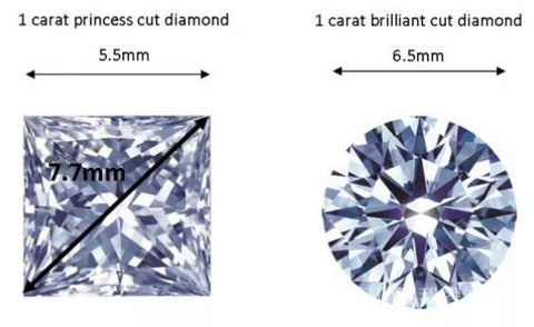 For a better cut princess diamonds, the visual effect will be about 15% larger than a bright round diamond shape for the same weight.