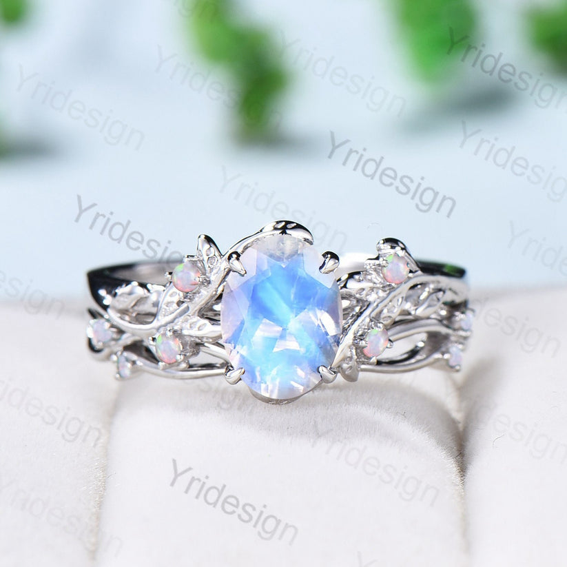 Natural Inspired Leaf moonstone opal ring set