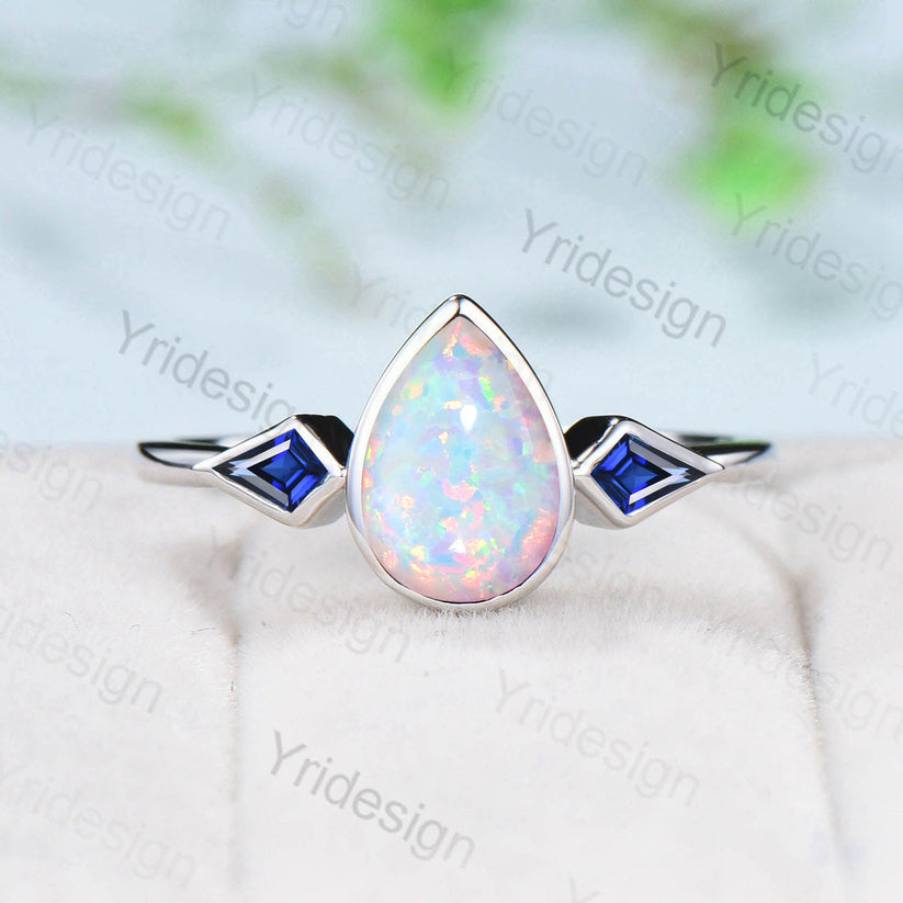 Bezel Set Opal Sapphire Ring Pear Shaped