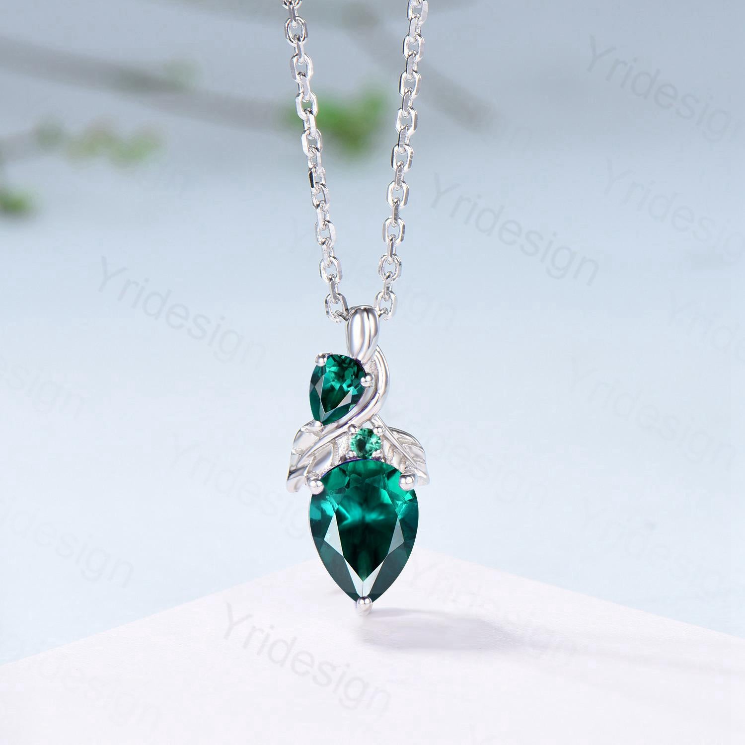 Pear Emerald Necklace, May Birthstone, Nature Inspired Vine Pendant