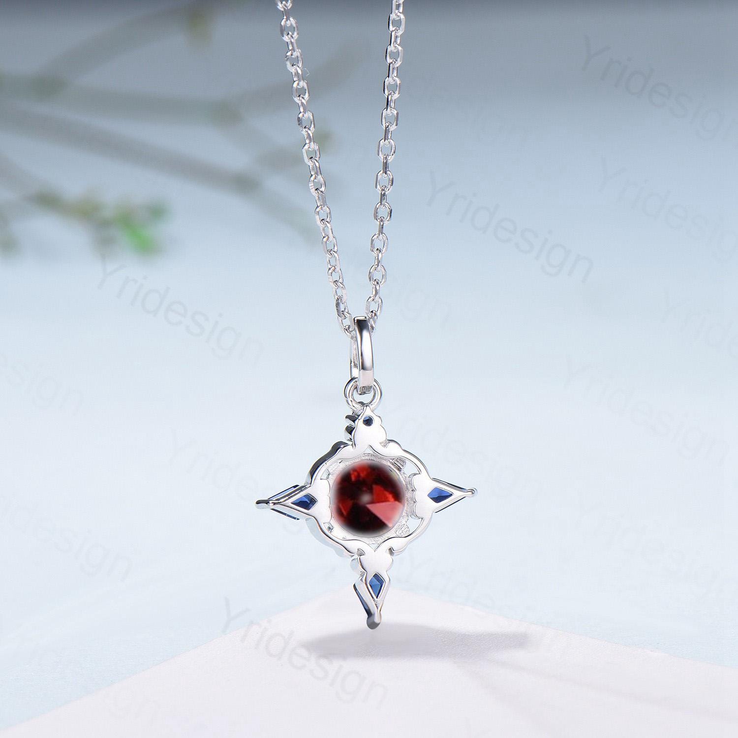 Unique Garnet Sapphire Pendant Necklace Celtic Knot Norse Viking Pendant 14K/18K White Gold Necklace Women Anniversary January Birthday Gift