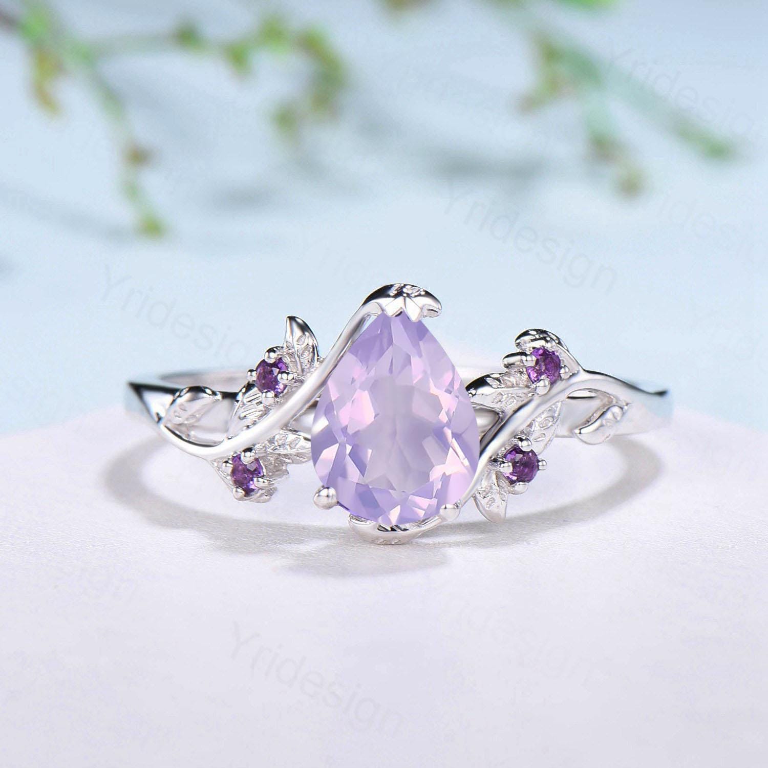 Nature Inspired Lavender Amethyst Engagement Ring: 14K Gold Twig Vine Anniversary Ring