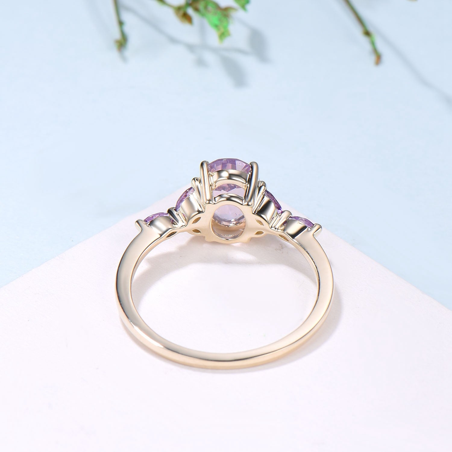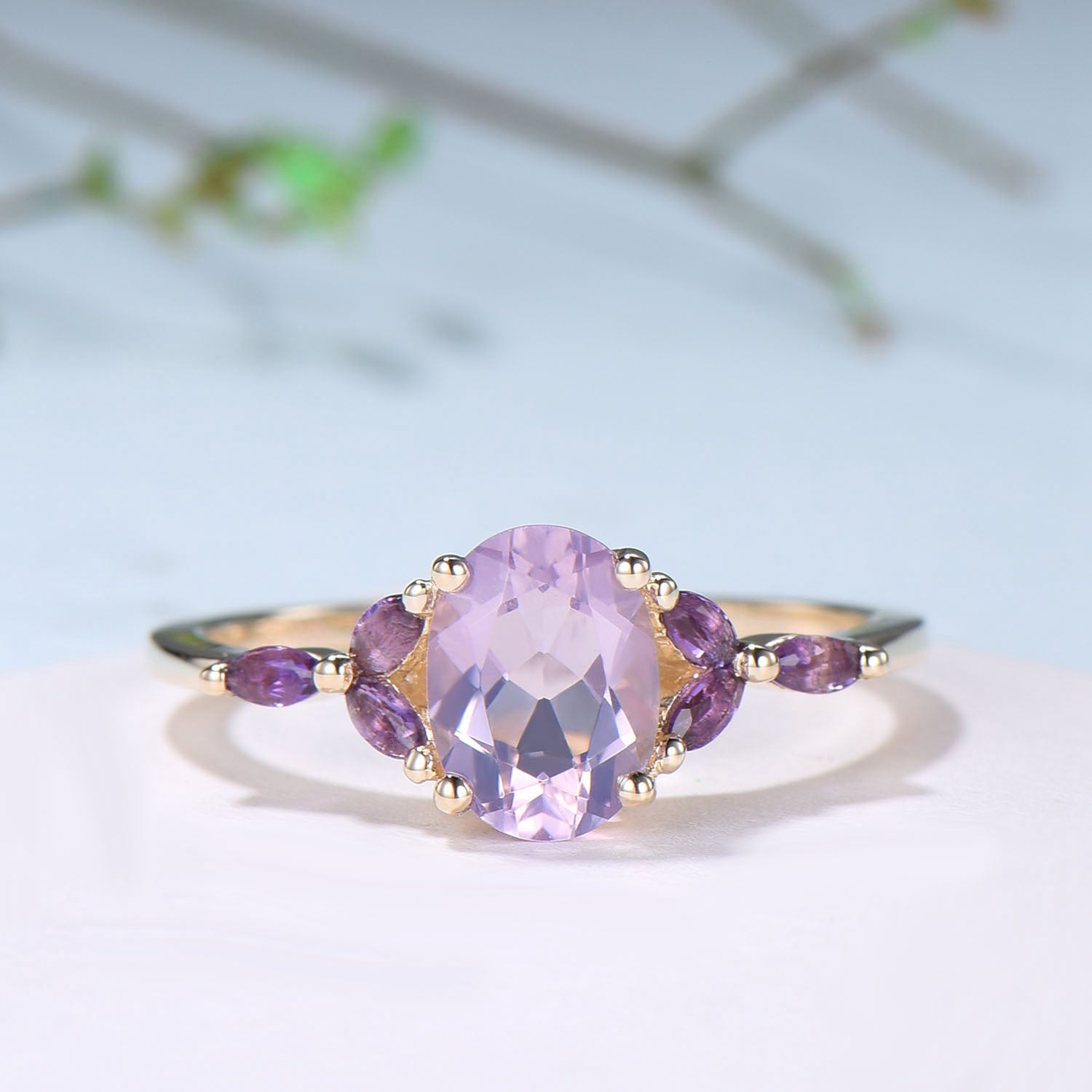 Vintage Lavender Amethyst Engagement Ring Unique Seven Stone Marquise Amethyst Ring Purple Crystal Wedding Ring Women February Birthstone