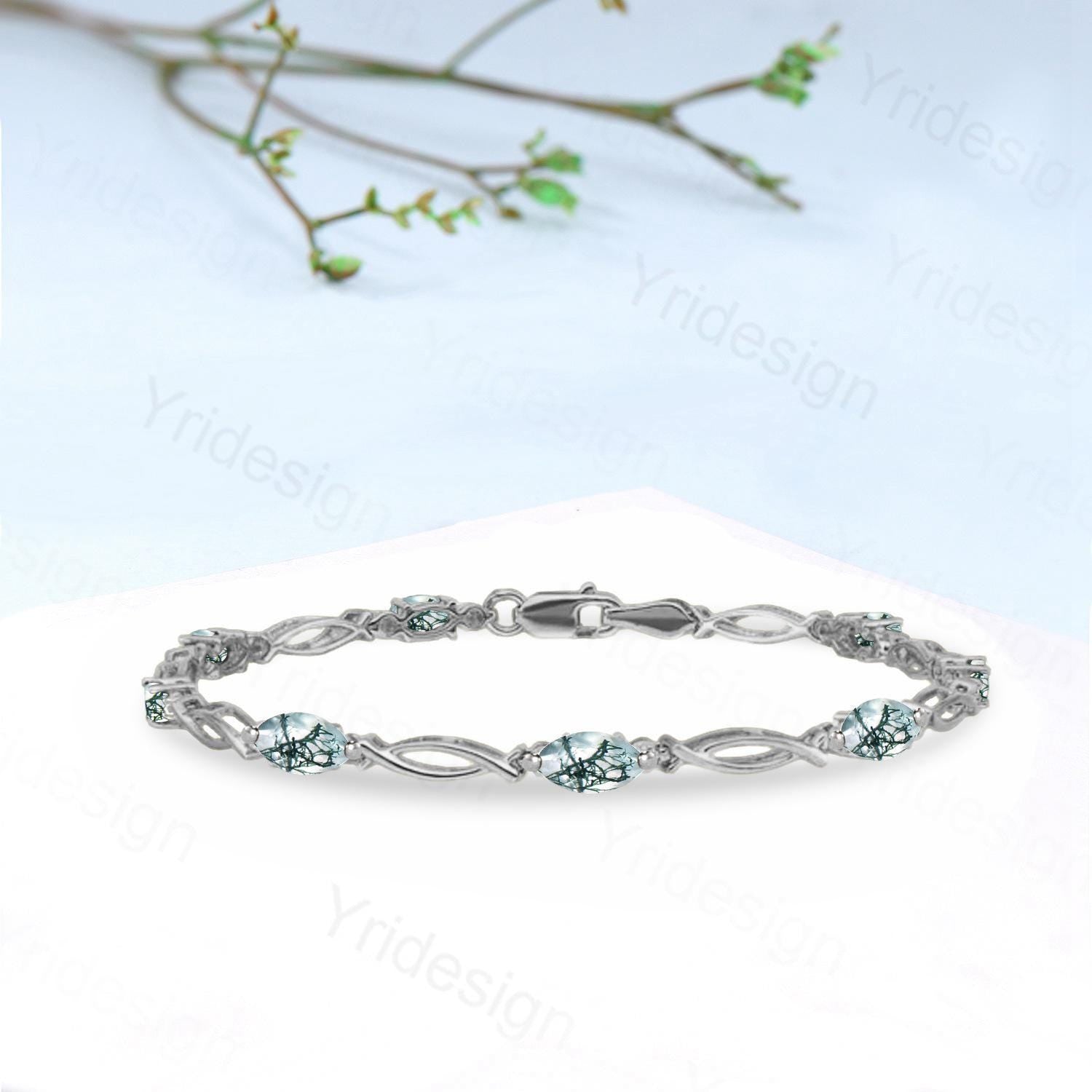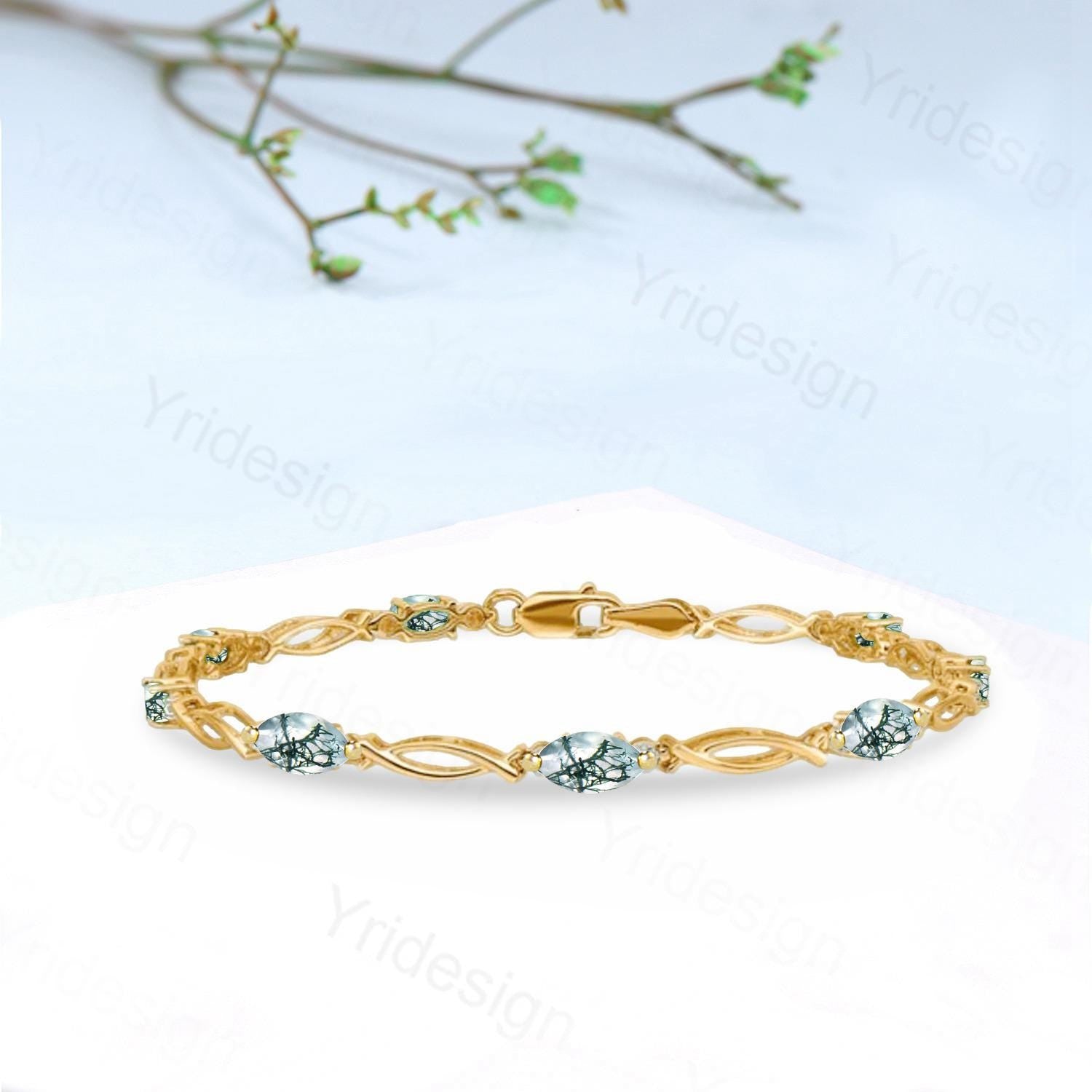 Enchanted Moss Agate Bracelet - Gold Twisted Vine Link Bracelet with Dendritic Gemstones, Nature-Inspired Boho Jewelry