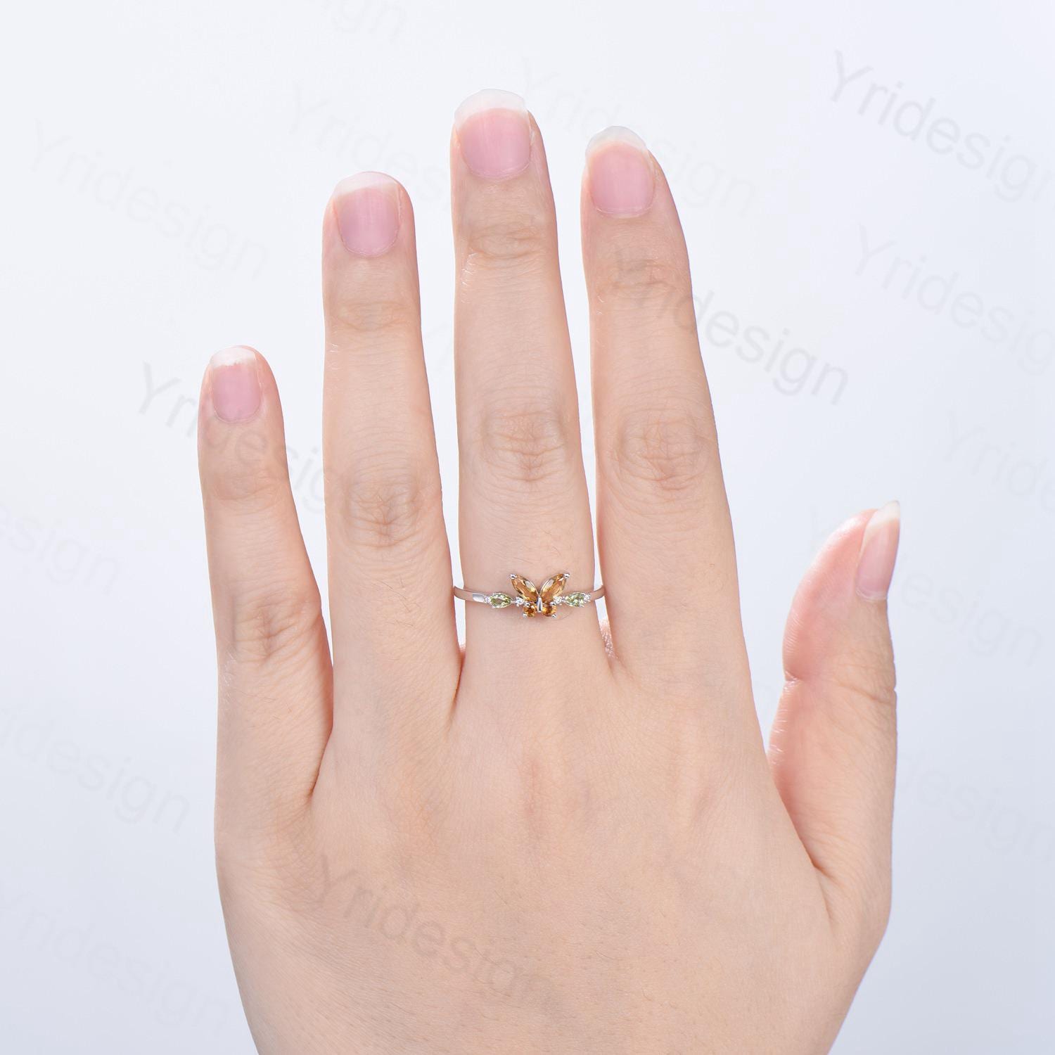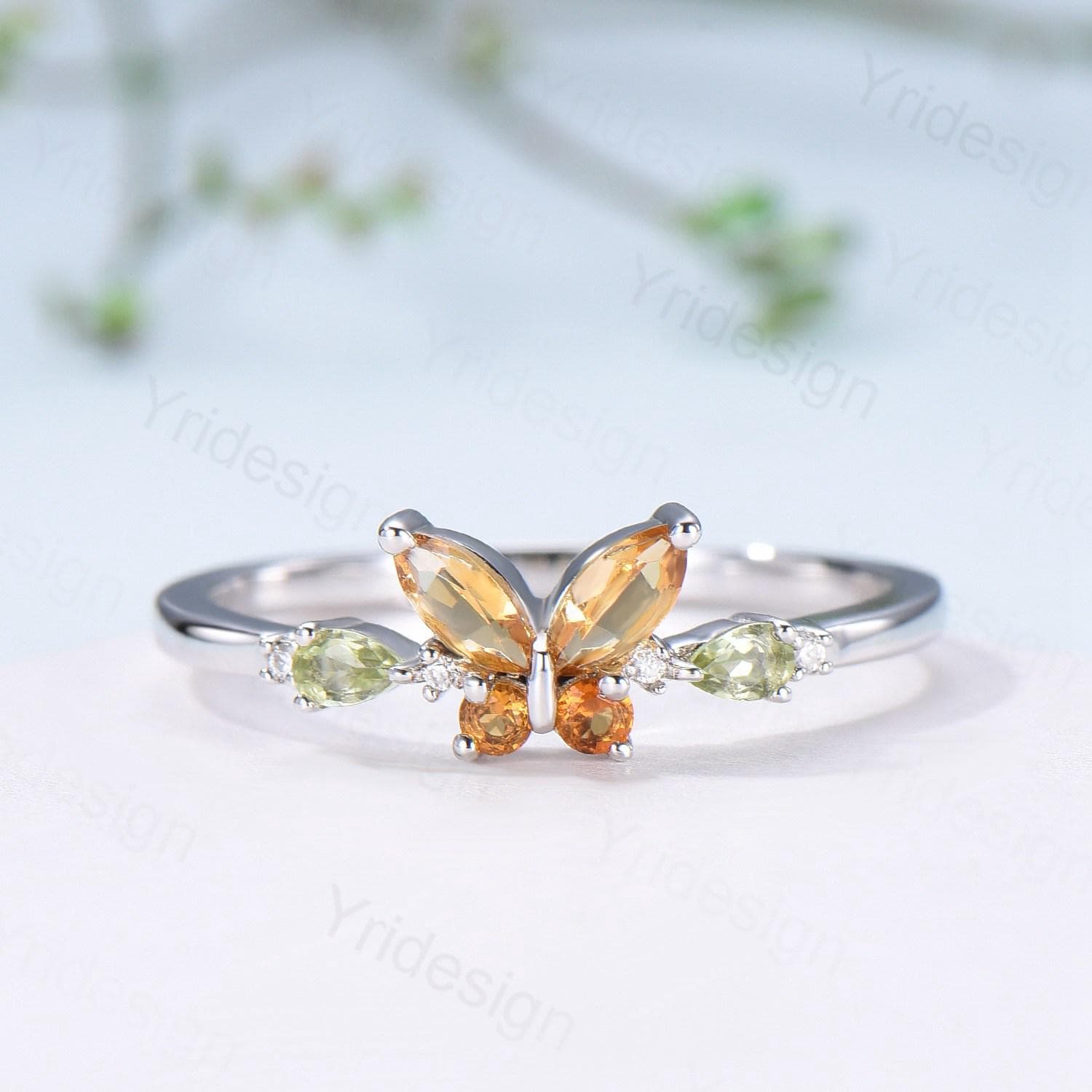 Unique Butterfly Citrine Peridot Engagement Ring Vintage Marquise Citrine Ring Pear Peridot Wedding Ring Anniversary Promise Birthstone Gift