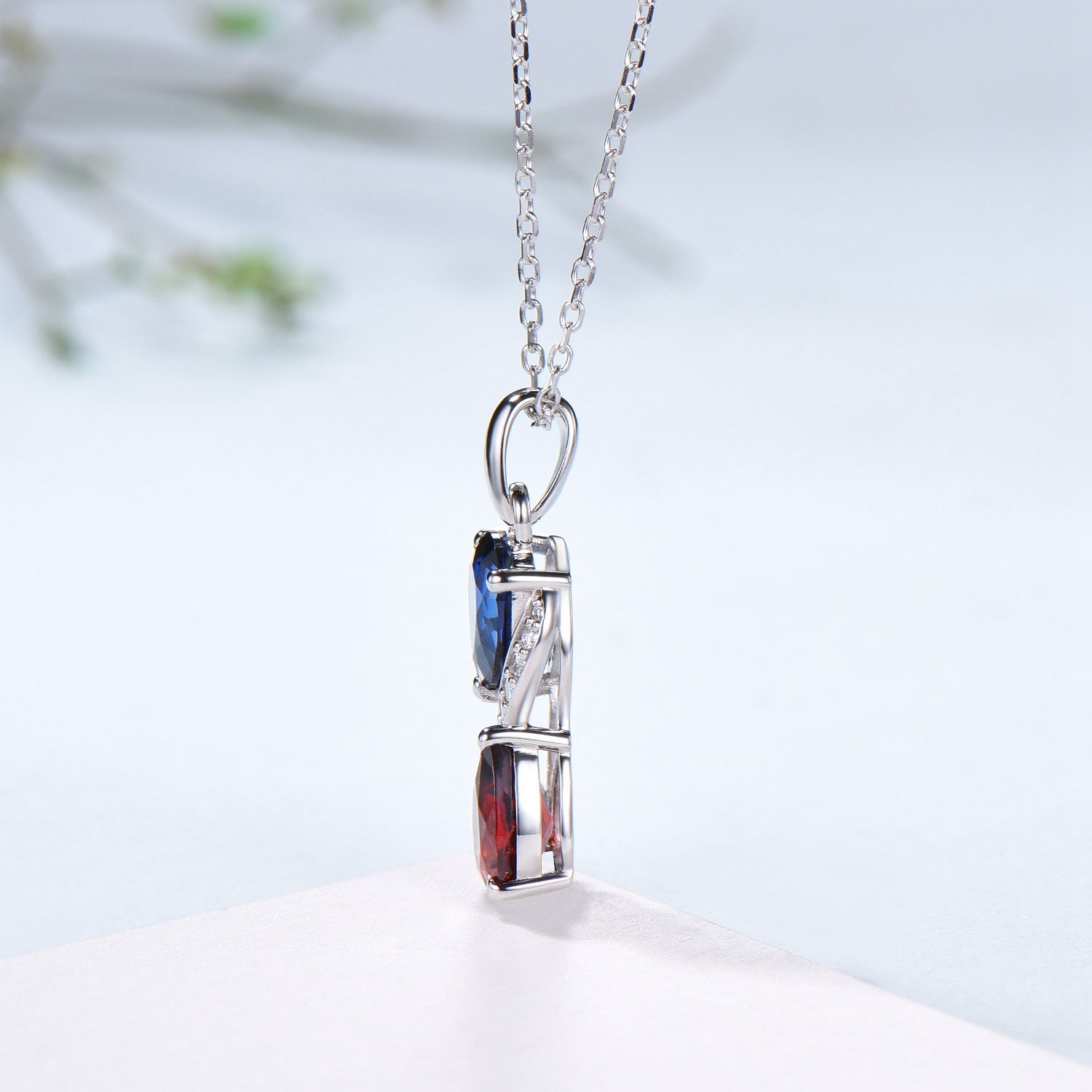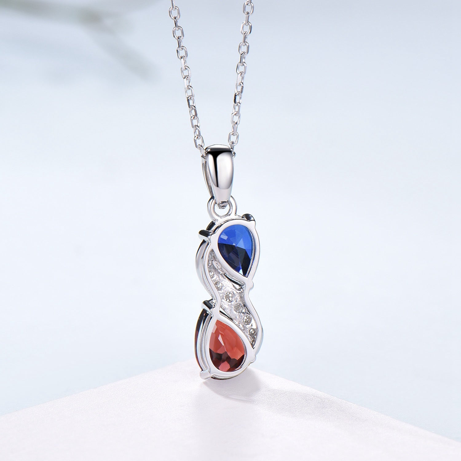 5x7mm pear shaped lab sapphire and natural garnet