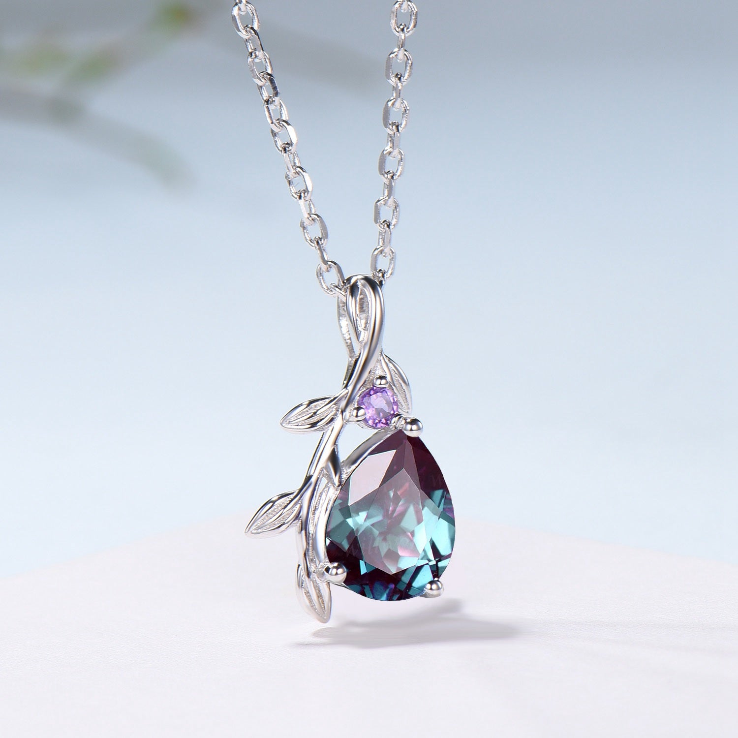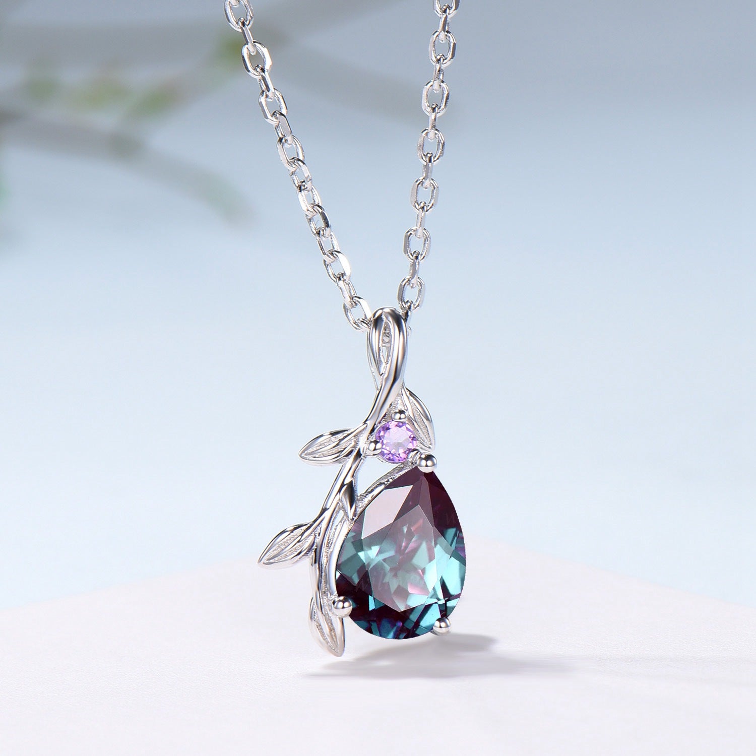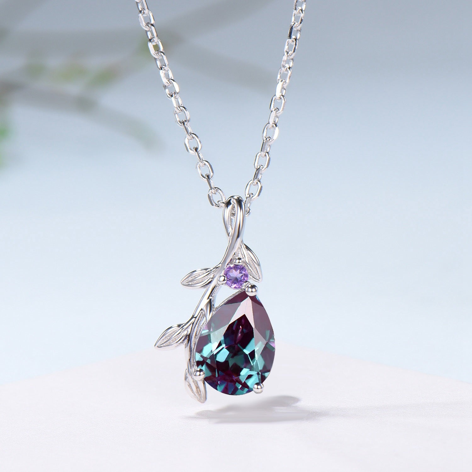 Fairy Core Aesthetic Alexandrite Necklace Color Changing Gemstone Pendant with Amethyst Accent