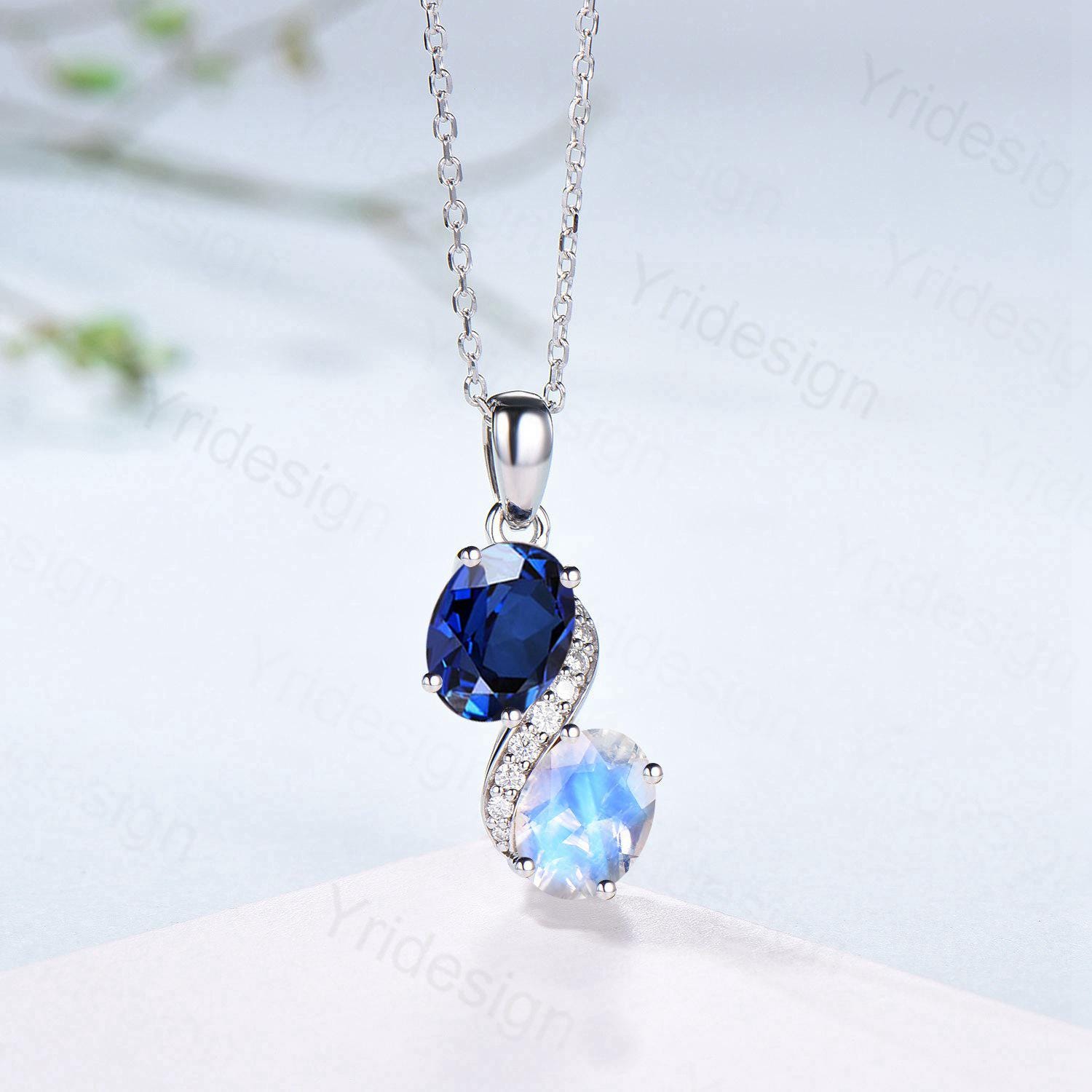 5x7mm oval cut lab blue sapphire and natural moonstone