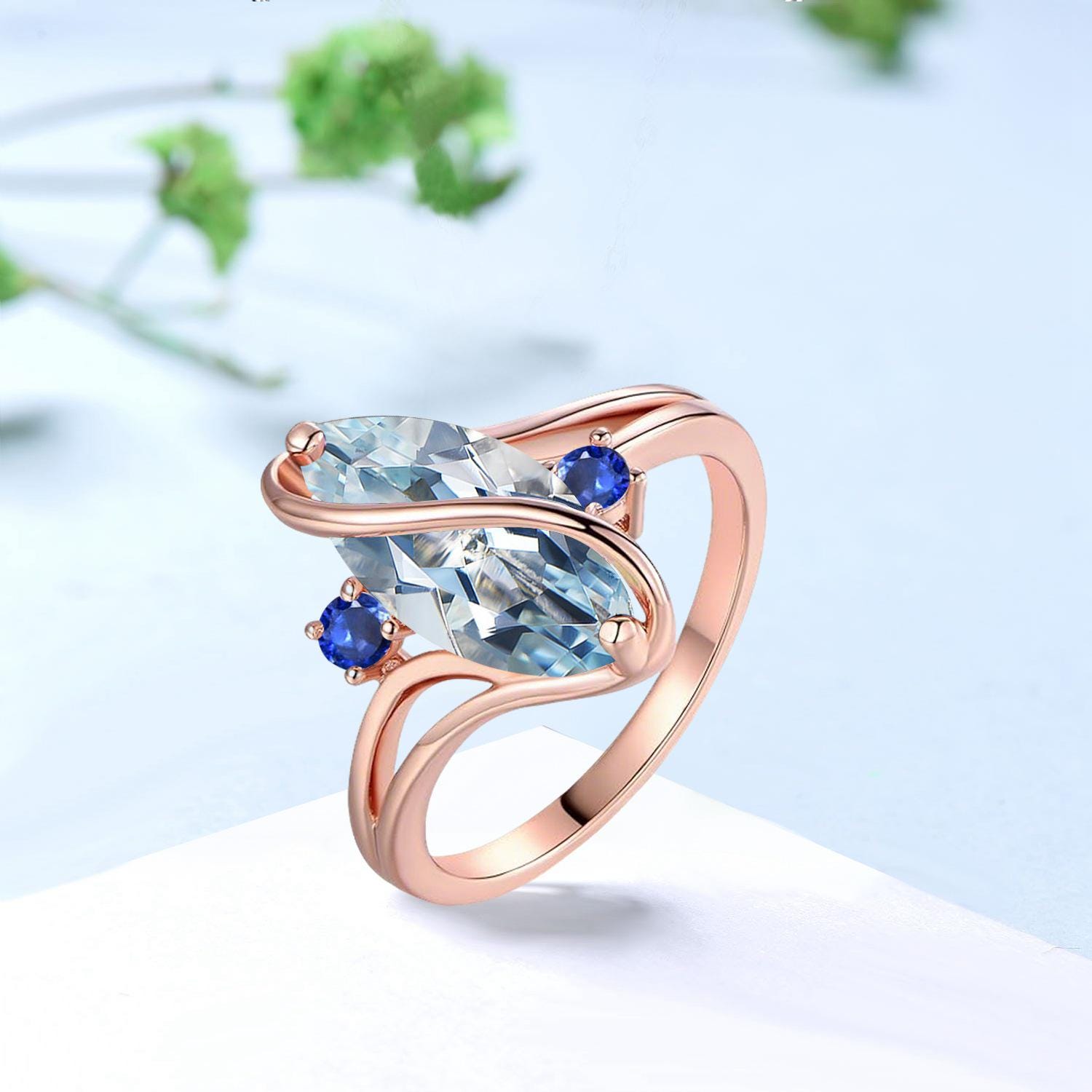 Marquise Aquamarine Engagement Ring, Split Shank, Sapphire Accents