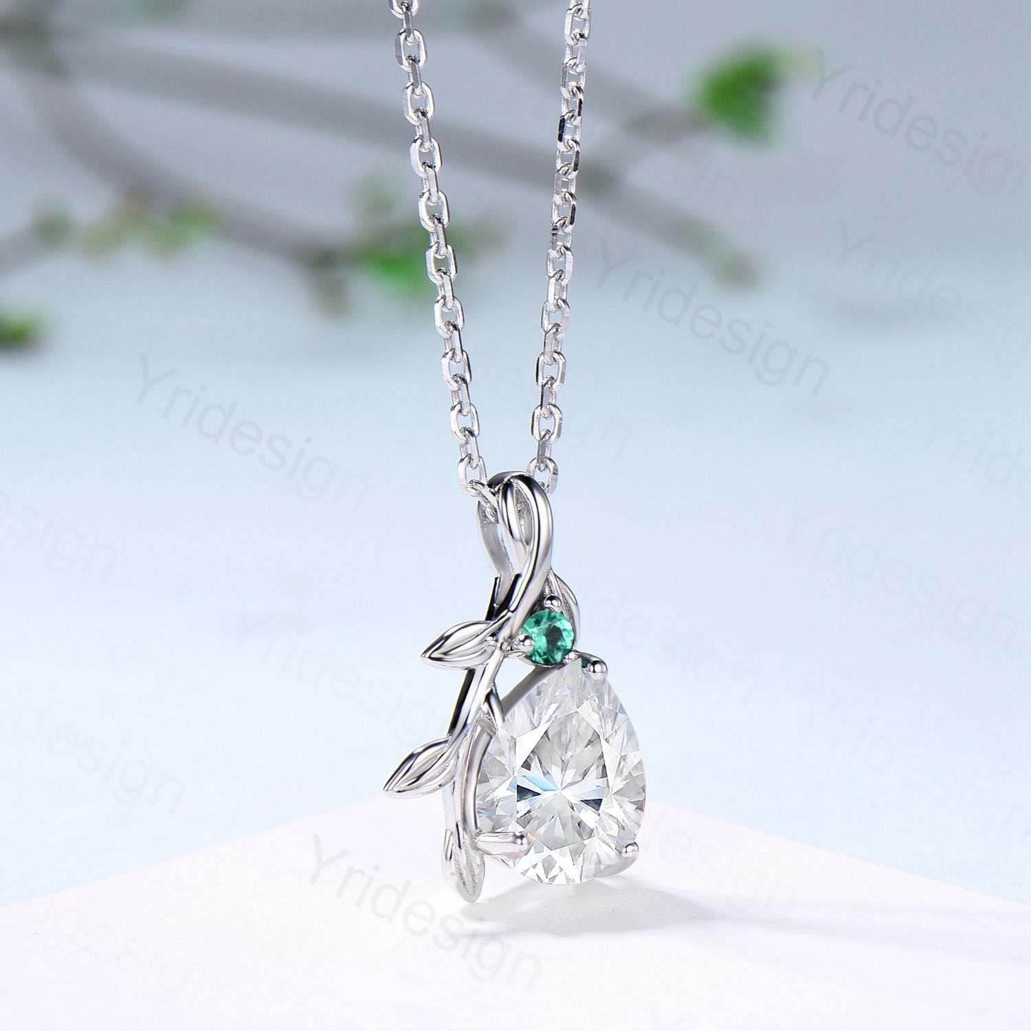 Elegant Pear Shaped Moissanite Pendant Necklace leaf vine branch emerald necklace Twisted nature inspired lab grown diamond anniversary gift