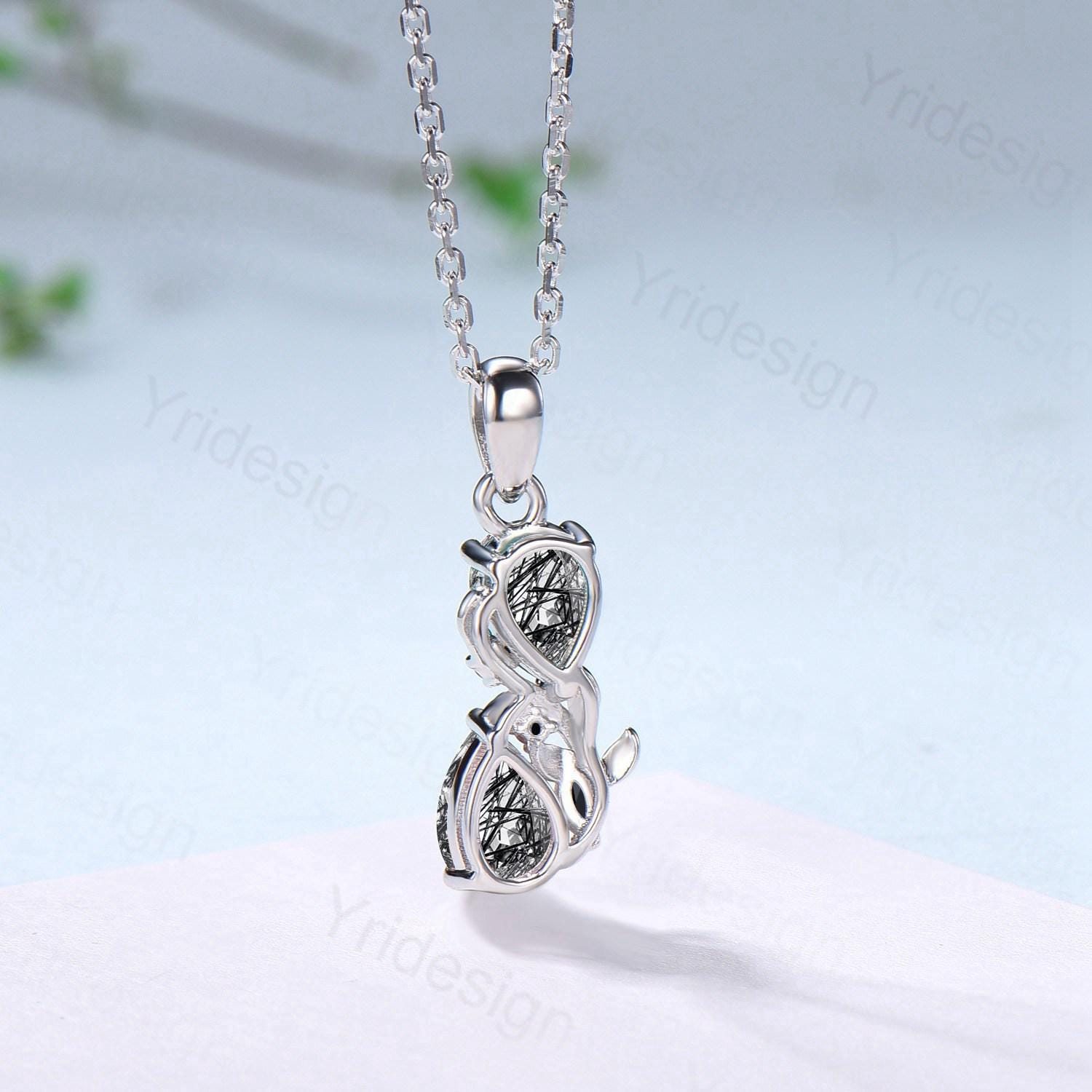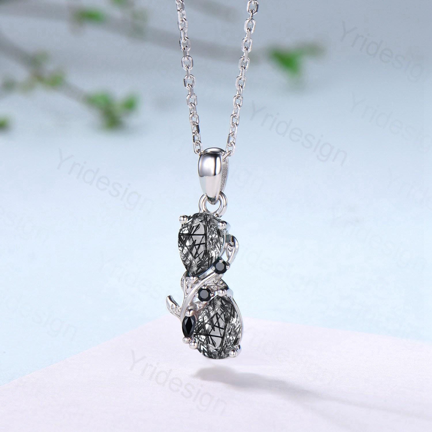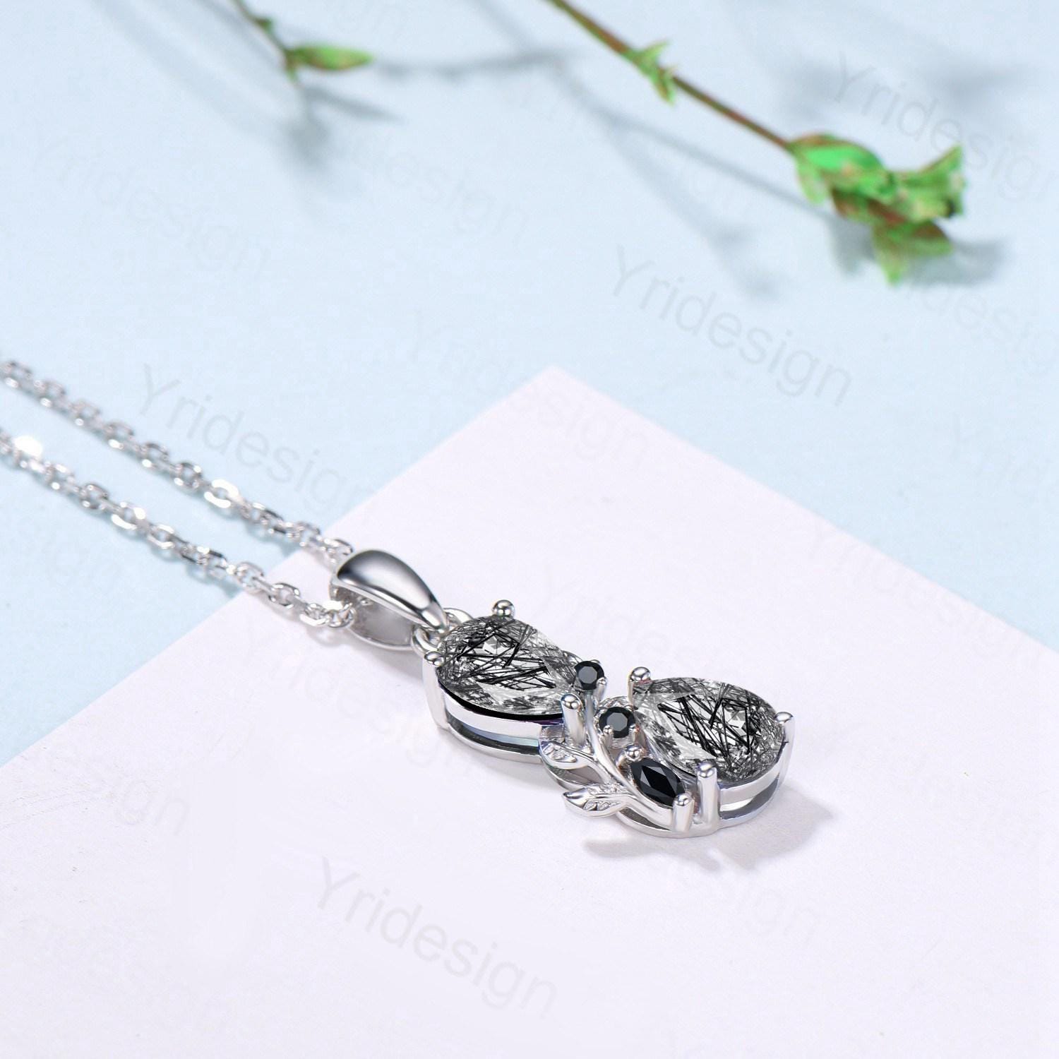 Nature Inspired Black Rutilated Quartz Pendant Necklace for Women Unique Alternative Spinel Necklace Branch Snake Teardrop Anniversary gift