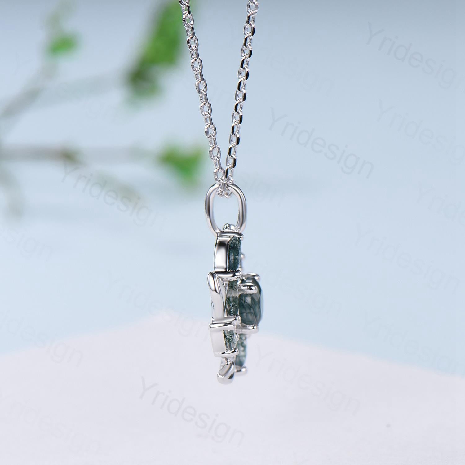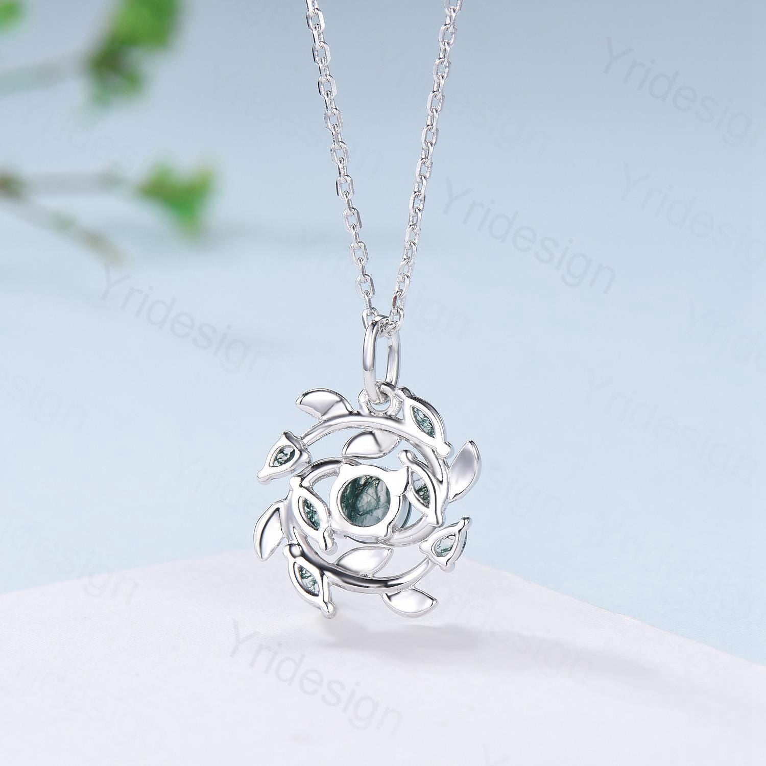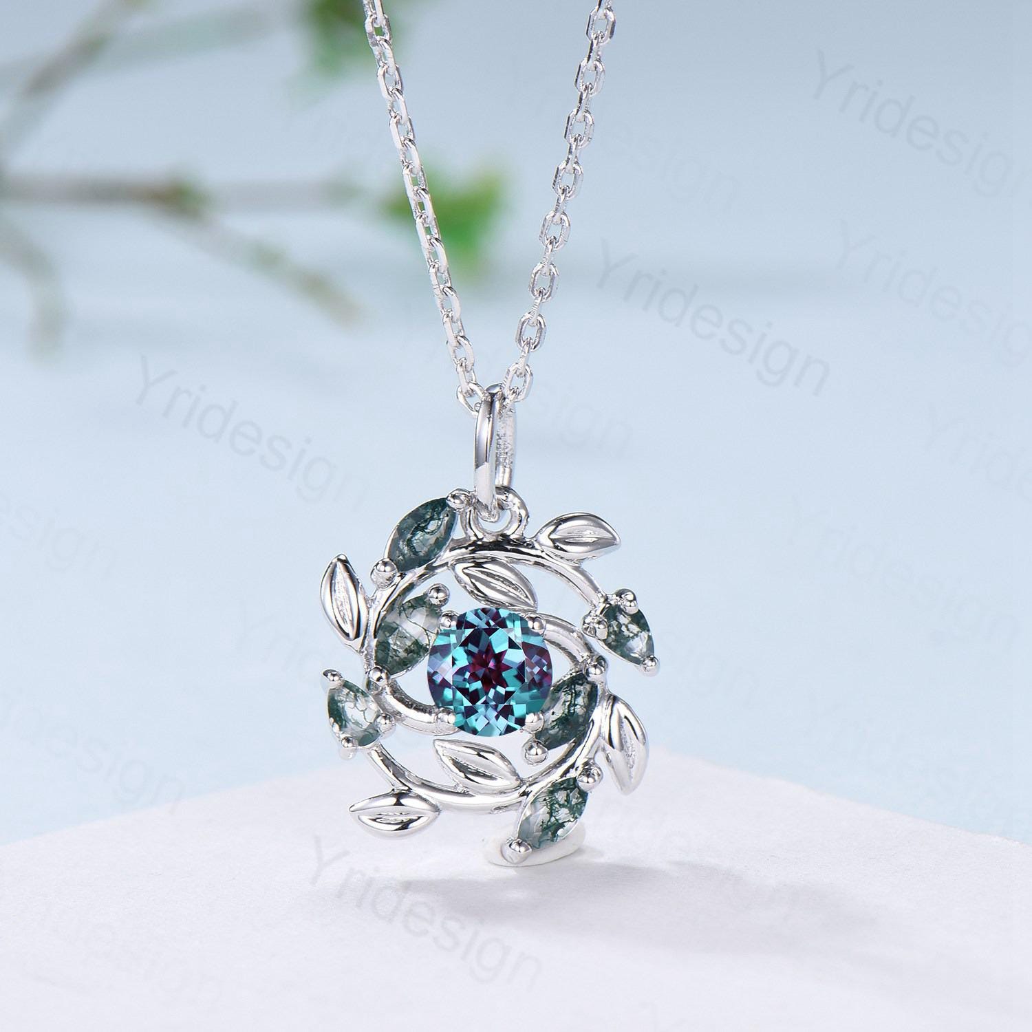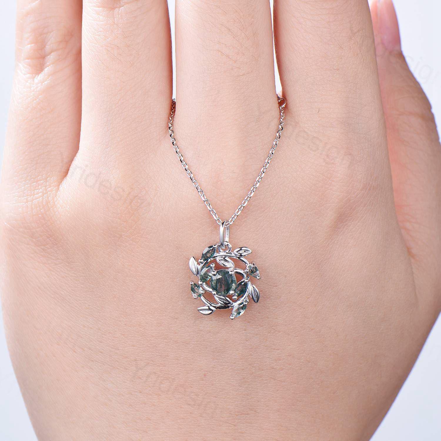 Handmade Blue Sandstone Necklace with Moss Agate, Nature Inspired Leaf Vine Pendant