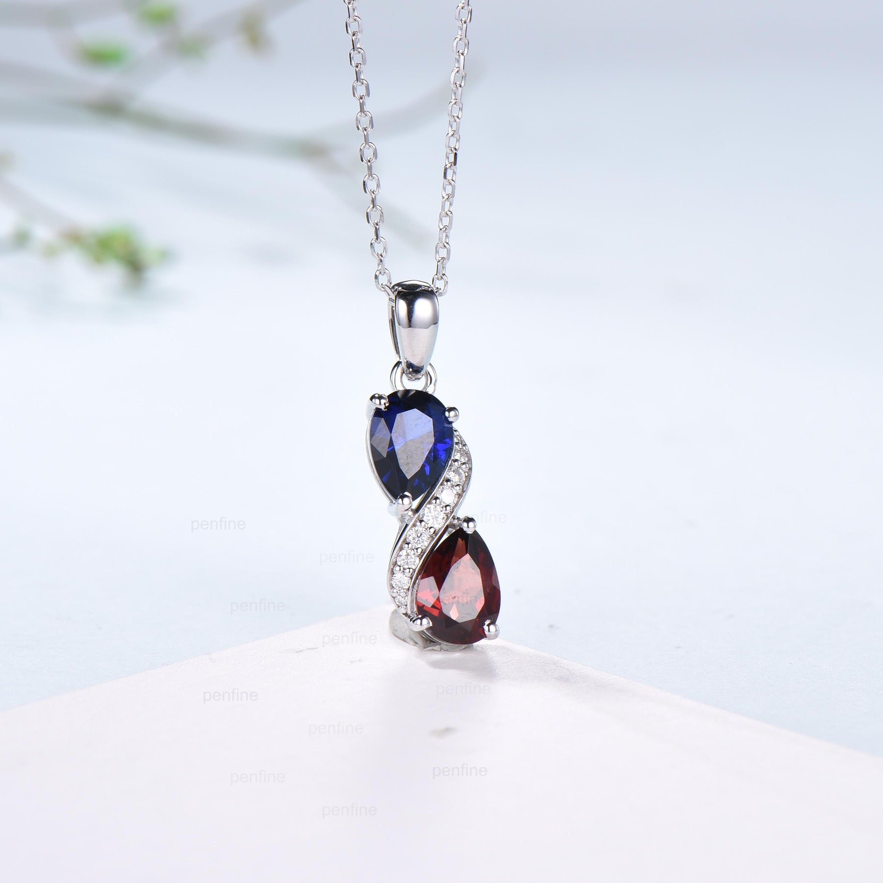 5x7mm pear shaped lab sapphire and natural garnet