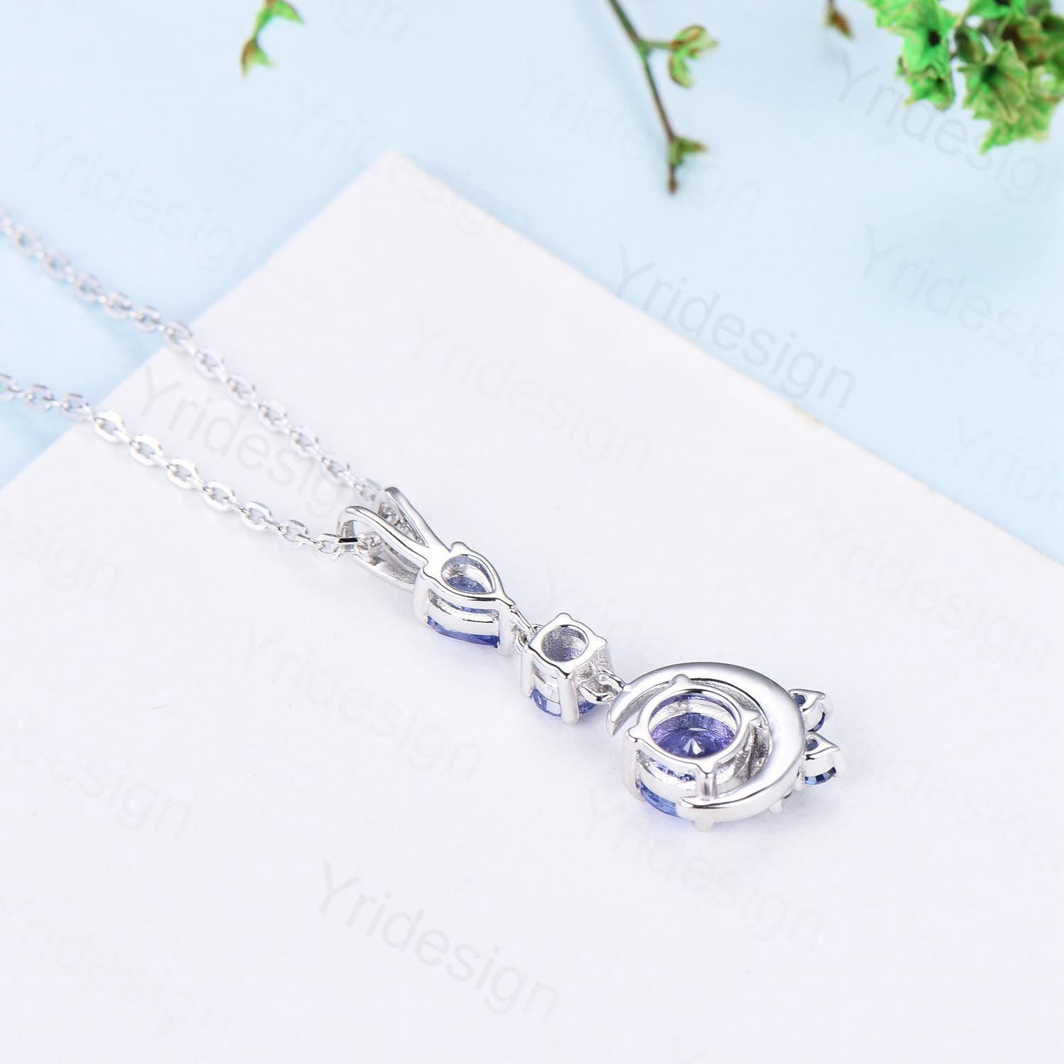 Unique Crescent Moon Fire Opal Necklace Elegant Cluster Sapphire tanzanite Pendant Necklace White gold silver necklace promise gift for wife