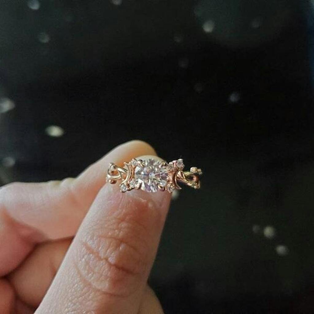 1CT Brilliant Moissanite ring Leaf Branch Moissanite Engagement Ring Nature Inspired Moon Wedding Ring Unique Twig Promise Ring For Women