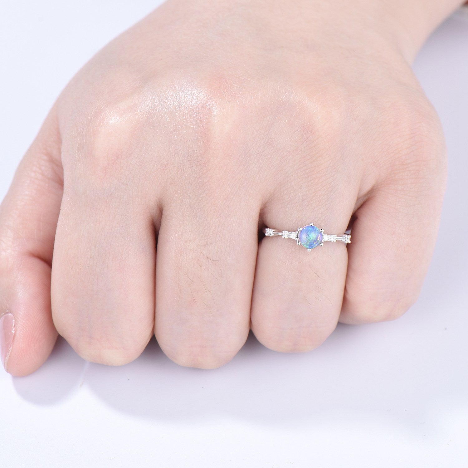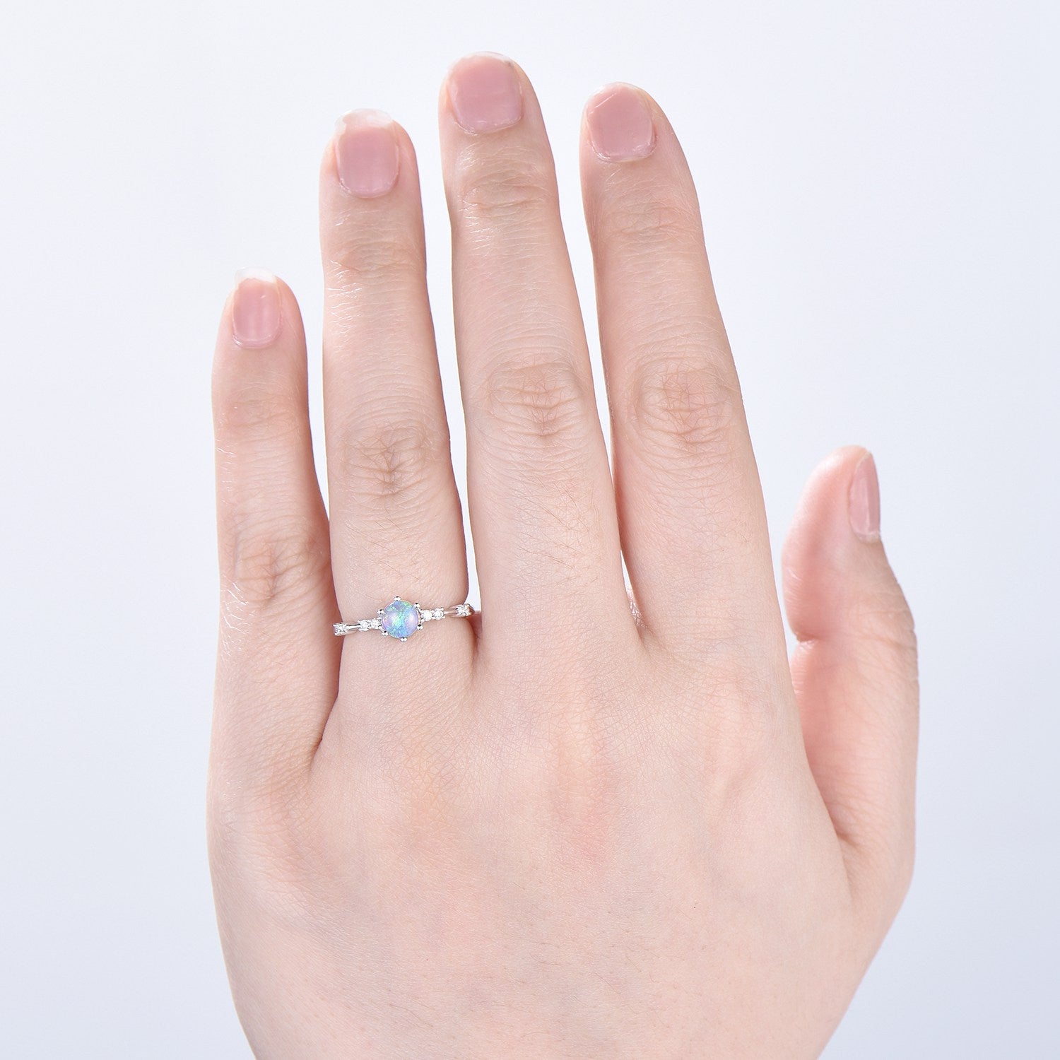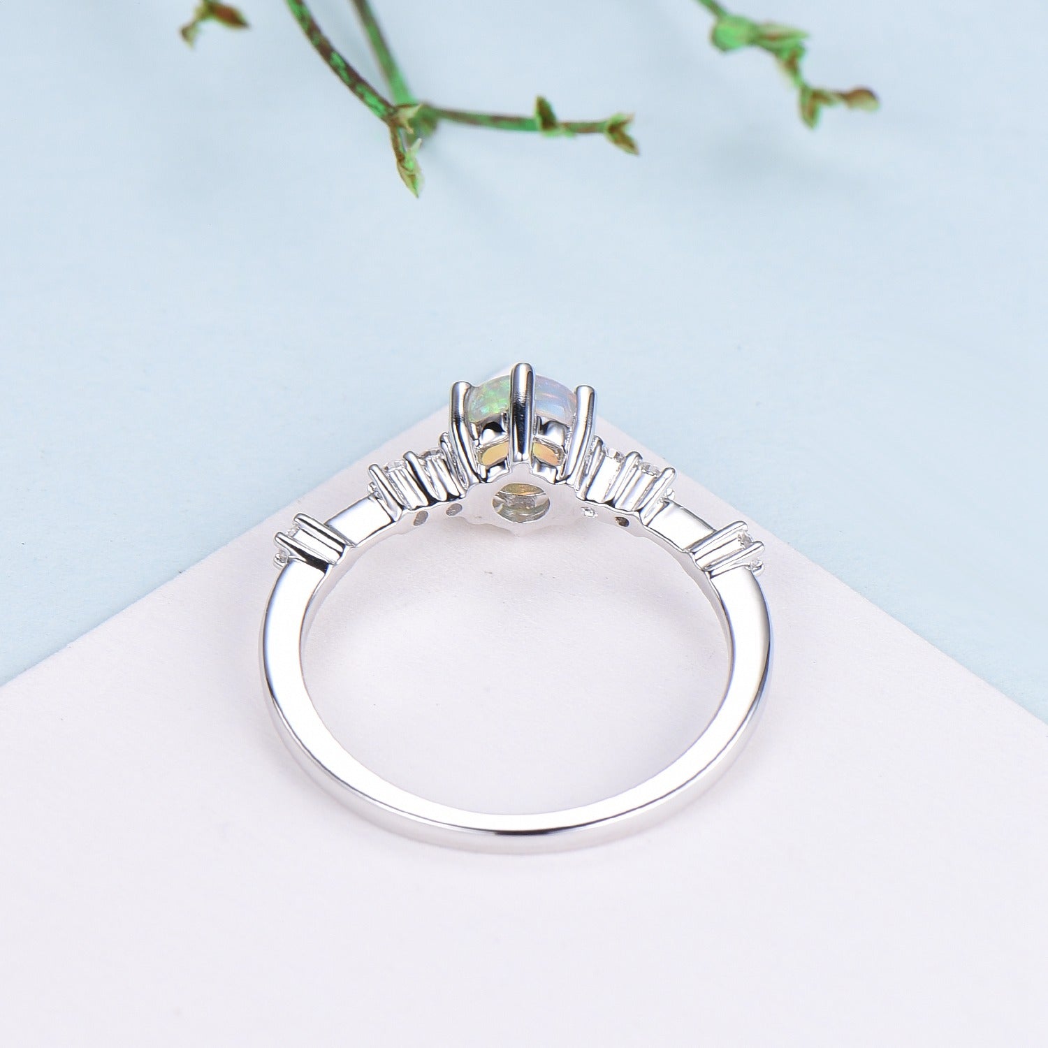 Dainty Natural Fire Opal Ring Natural Inspired White Opal Diamond Engagement Ring White Gold Minimalist Bridal Anniversary Ring for Women