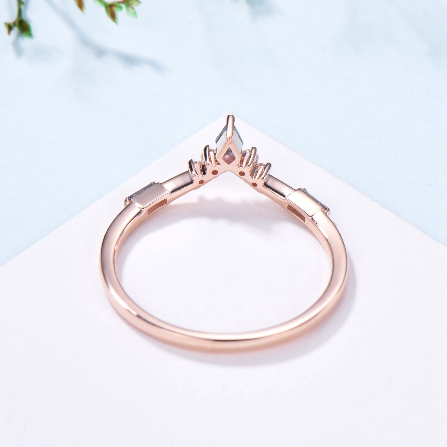 Curved Kite and Baguette Cut Alexandrite Wedding Band, Rose Gold Cluster Moissanite Ring