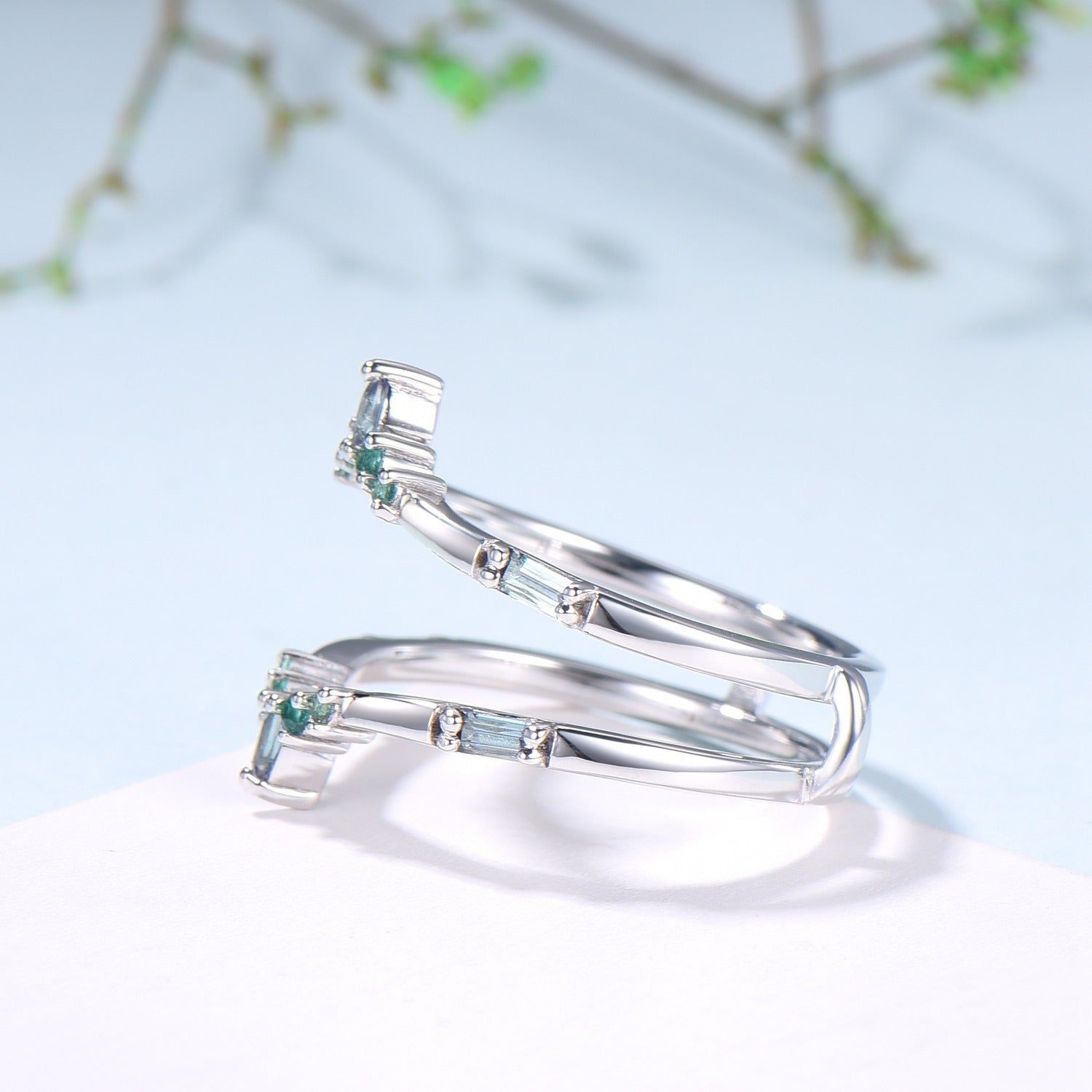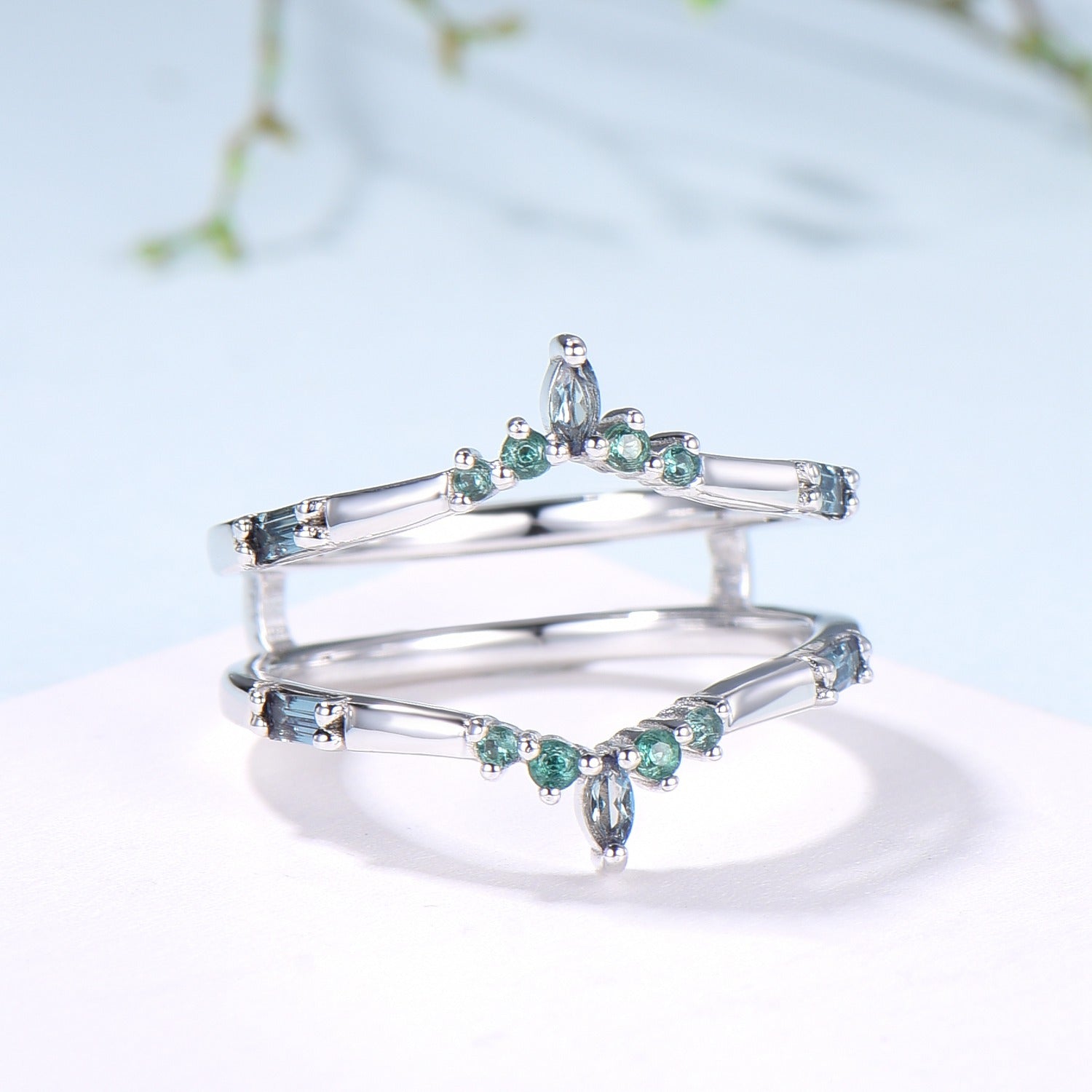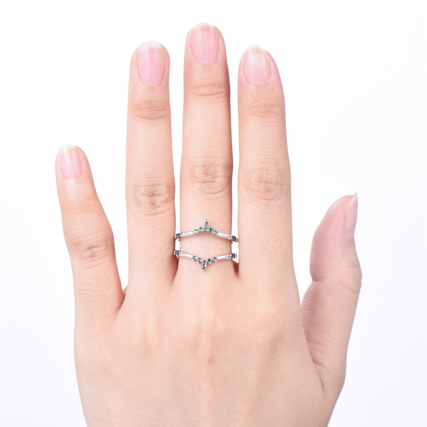 Double Curved Alexandrite Emerald Wedding Band Sterling Silver Contour Enhancer Stacking Marquise Baguette Matching Band Anniversary Gifts
